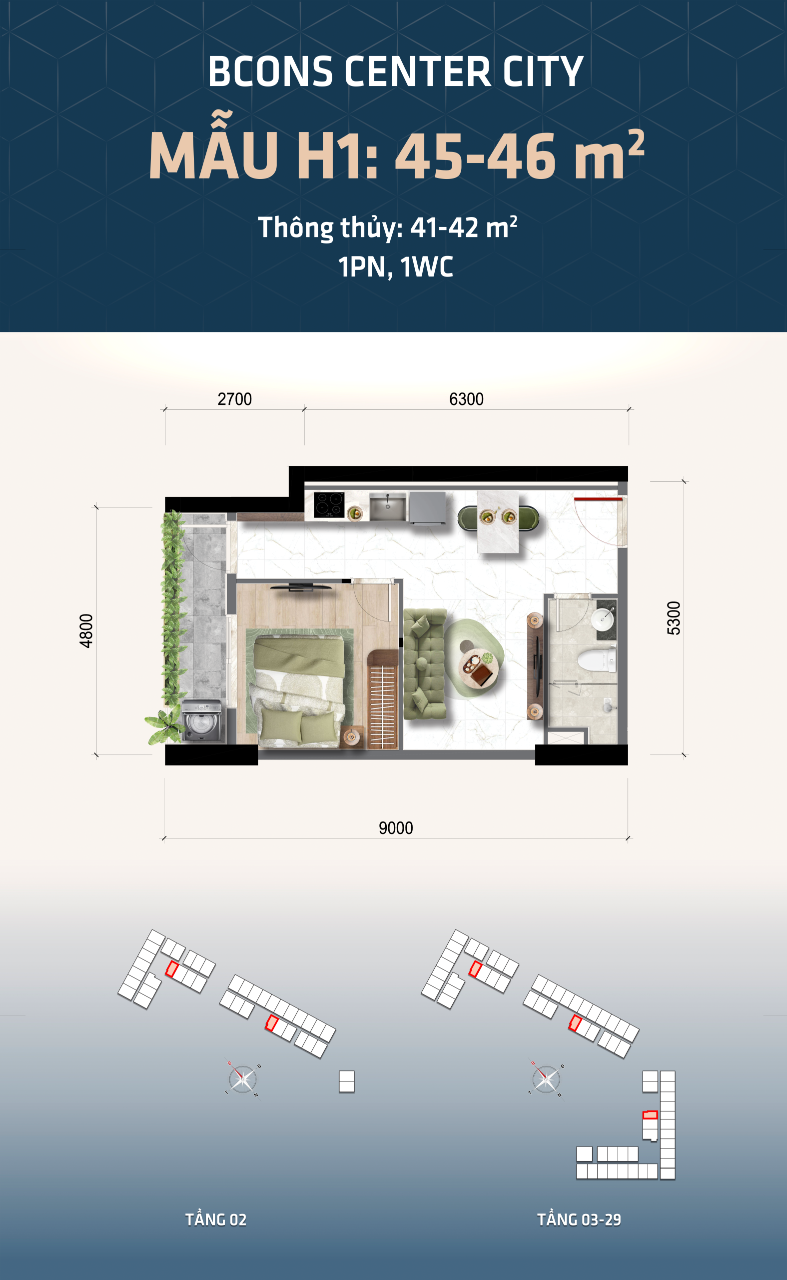 Layout Căn Hộ - Bcons Center City